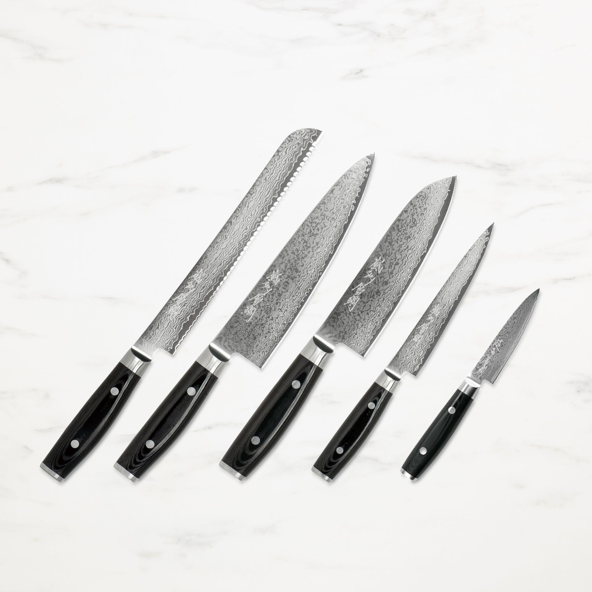 • Comprehensive five piece knife set includes a 23cm bread knife, 20cm chef's knife, 16.5cm santoku knife, 15cm slicing knife and 10cm paring knife